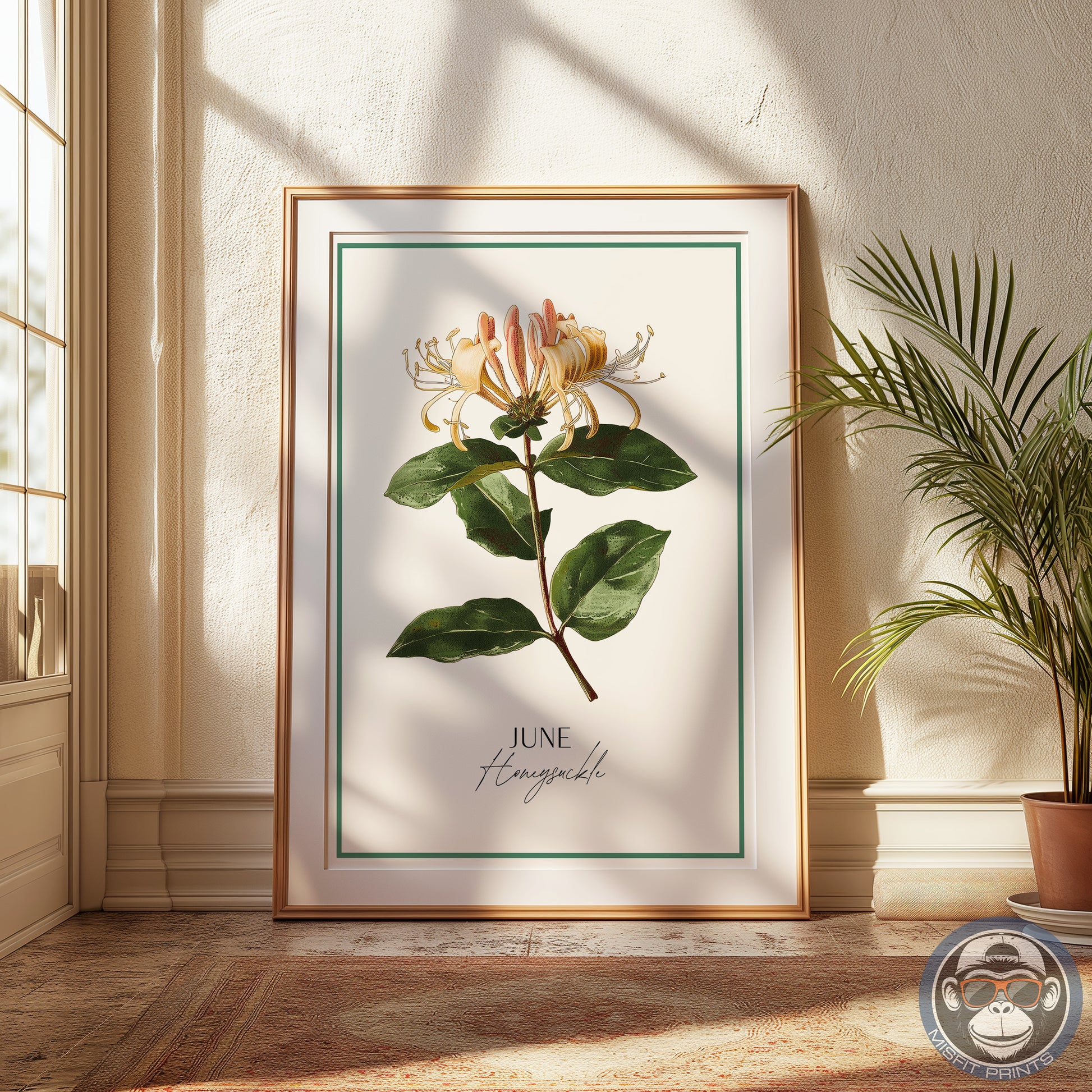 Celebrate the warmth of early summer with our June Birth Flower Art Print, featuring the sweet Honeysuckle.