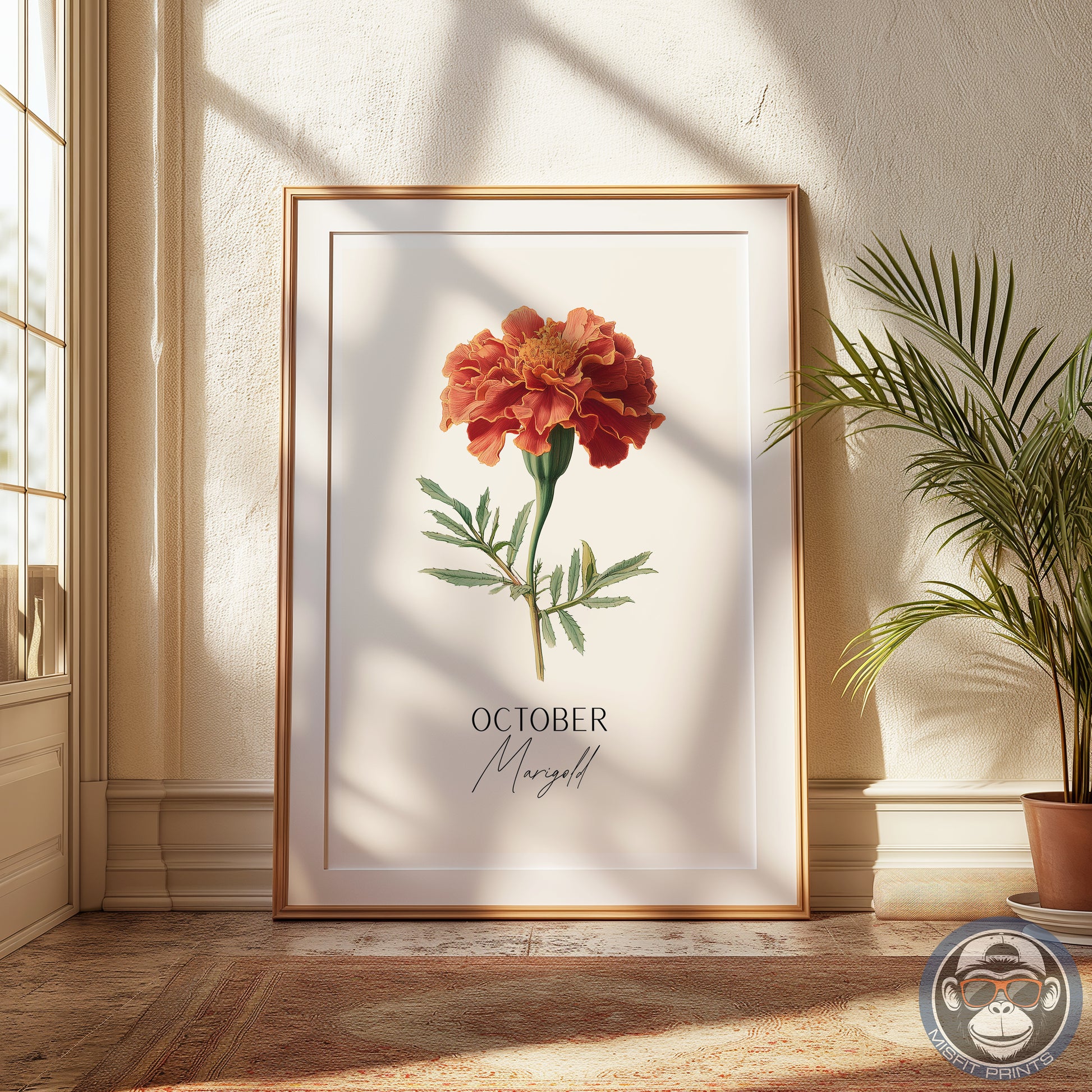 Celebrate autumn’s radiance with our October Birth Flower Art Print, featuring the vibrant Marigold.