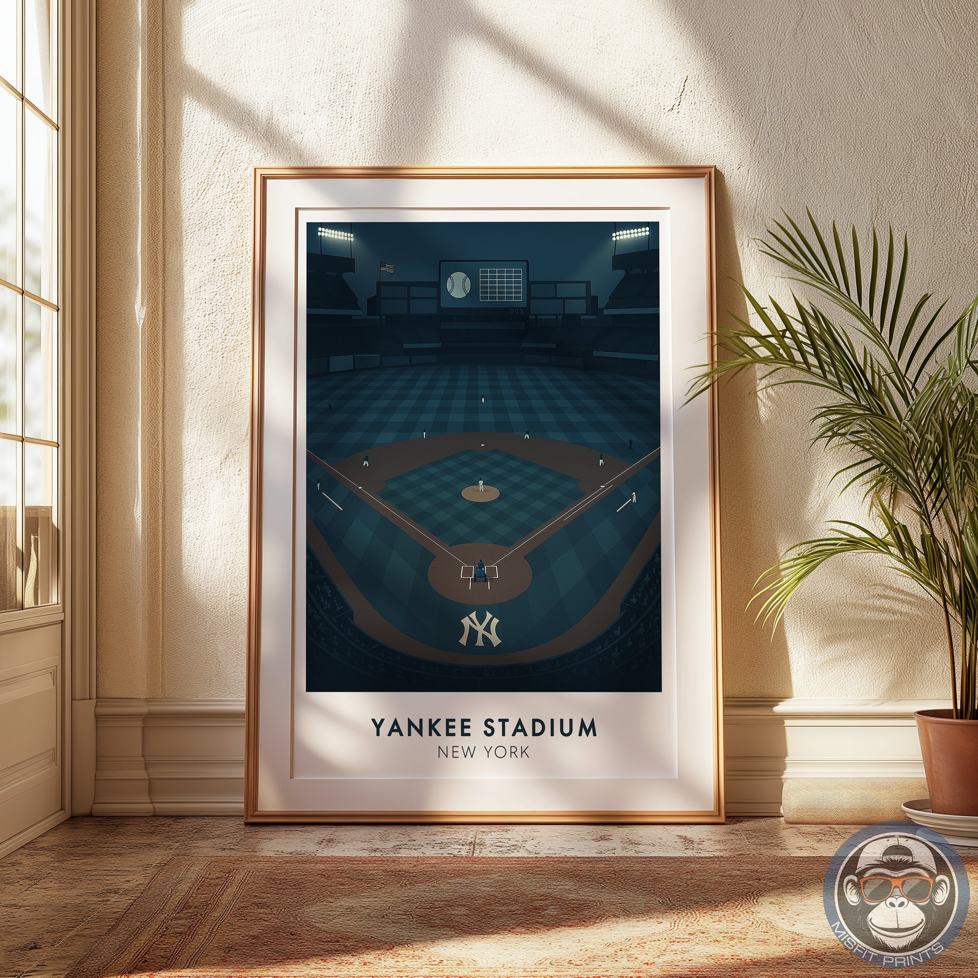 New York Night Baseball Poster, Minimalist Stadium Art Print