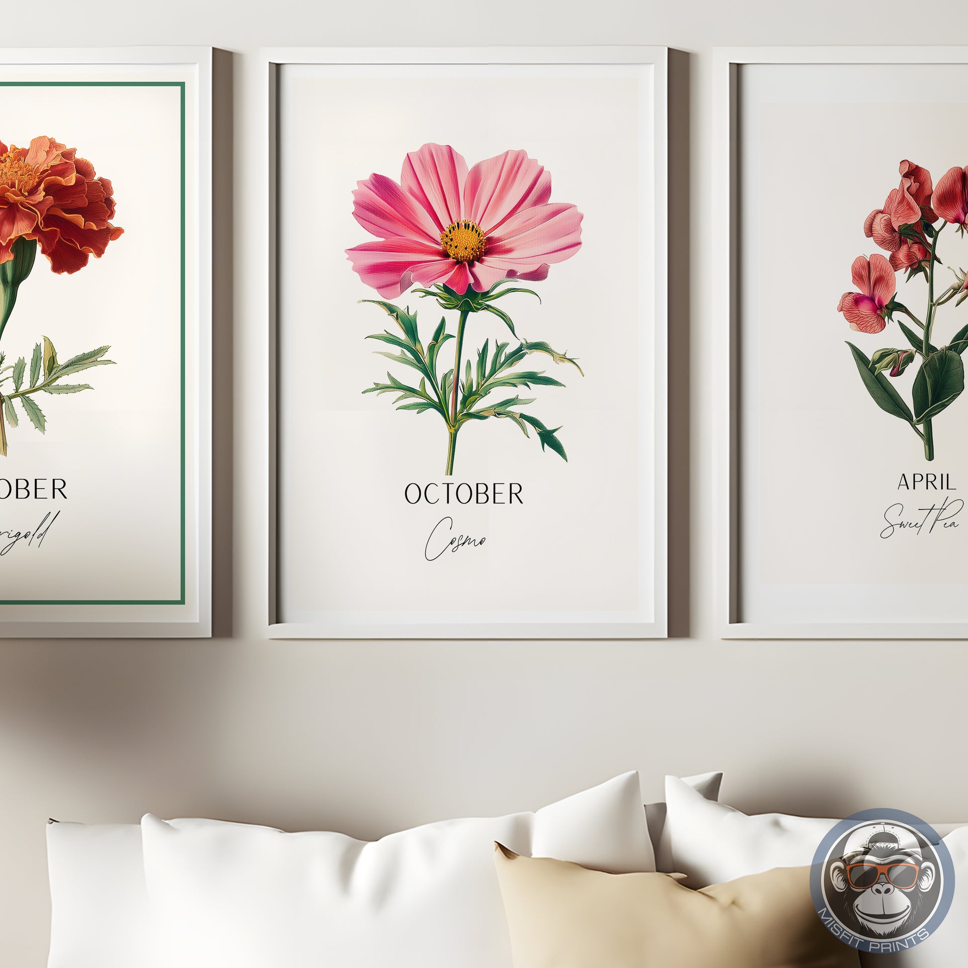 October Birth Flower Art Print – Cosmos Botanical Wall Art