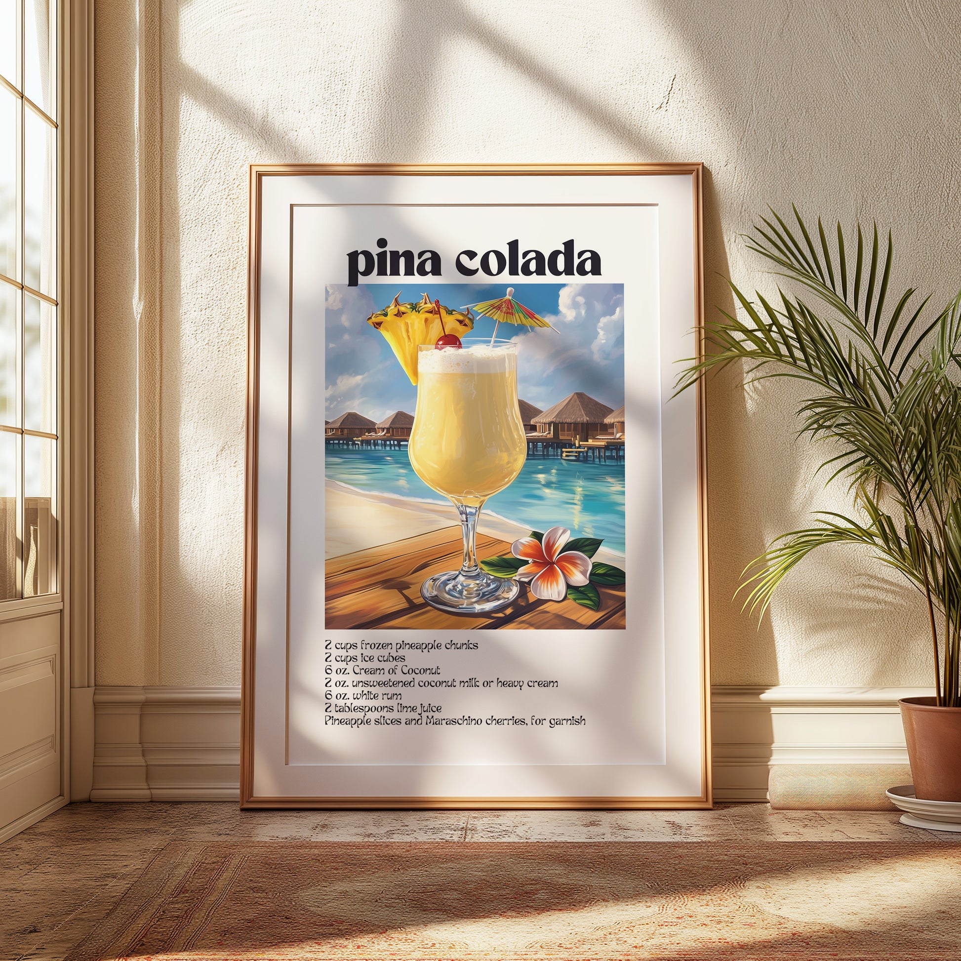 Whether you’re styling your home bar, refreshing your kitchen wall, or gifting someone who lives for tropical drinks and good times, this print brings the spirit of the Piña Colada to life in full color.