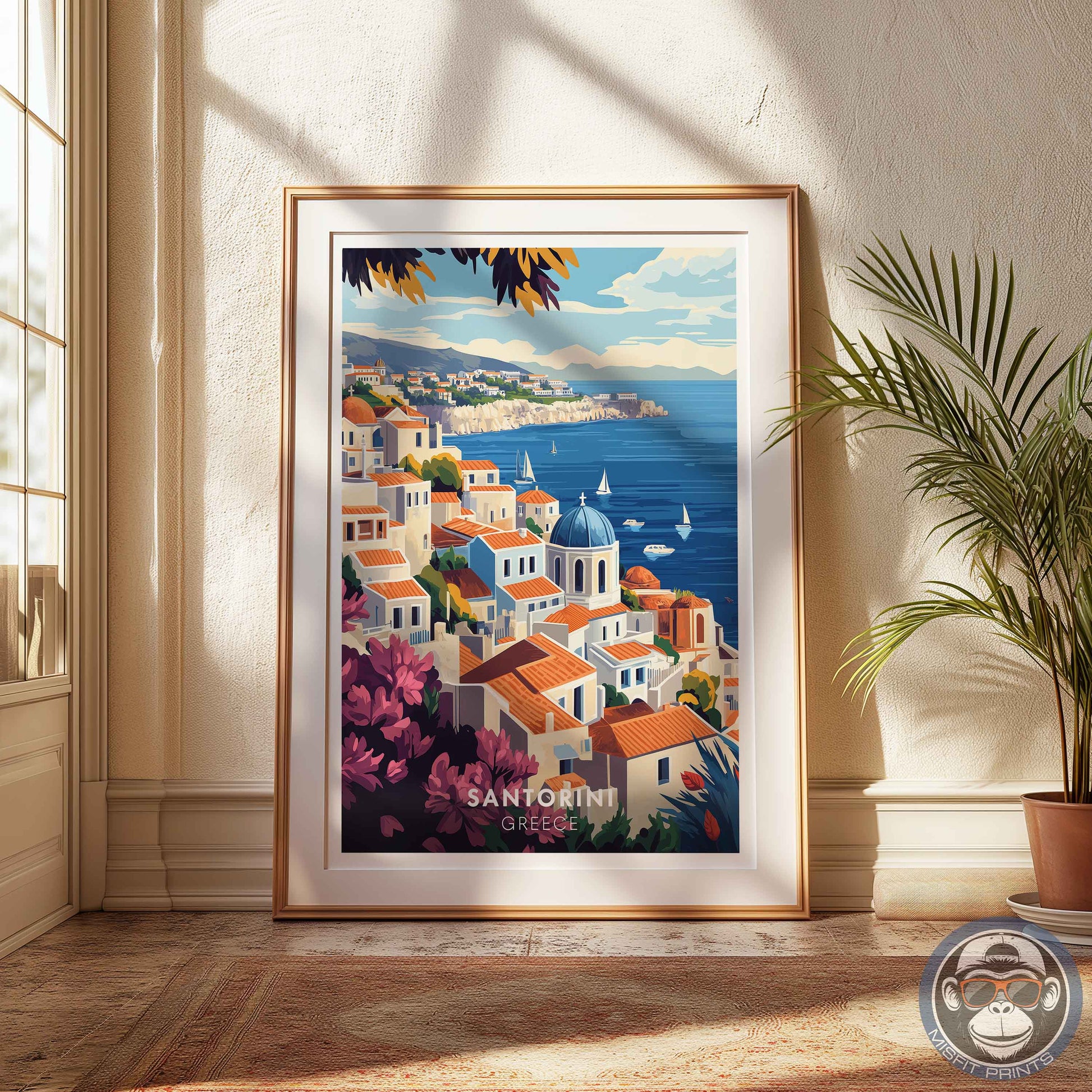 Santorini Poster – Greece Coastal Wall Art, Mediterranean Travel Print, Island Decor