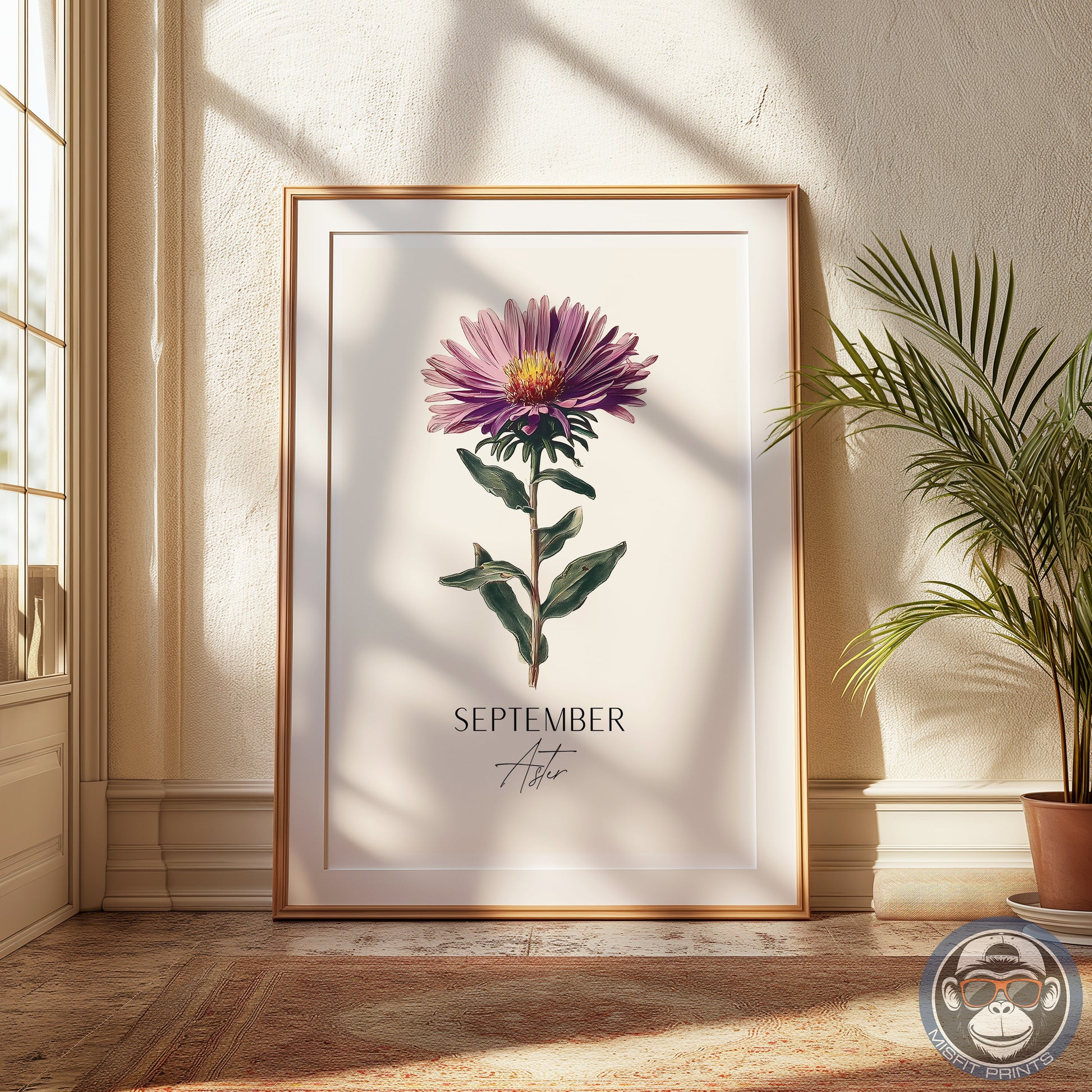 Celebrate autumn birthdays with our September Birth Flower Art Print, featuring the enchanting Aster.