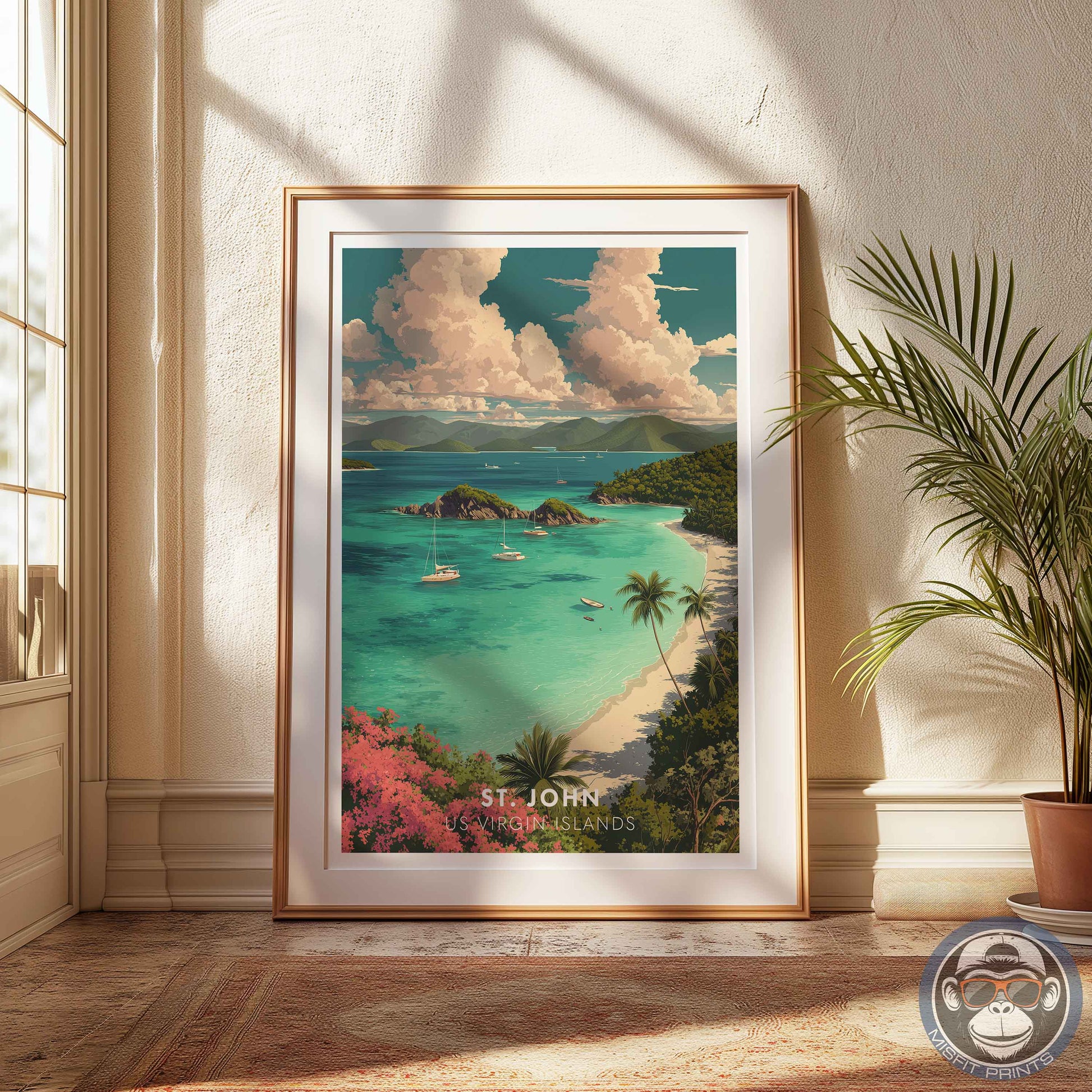 Bring the serene beauty of the Caribbean into your home with our St. John Poster, a vibrant US Virgin Islands wall art print inspired by the breathtaking shores of Trunk Bay. This artwork captures the turquoise waters, soft white sands, and lush green hills that make St. John one of the most enchanting destinations in the world.