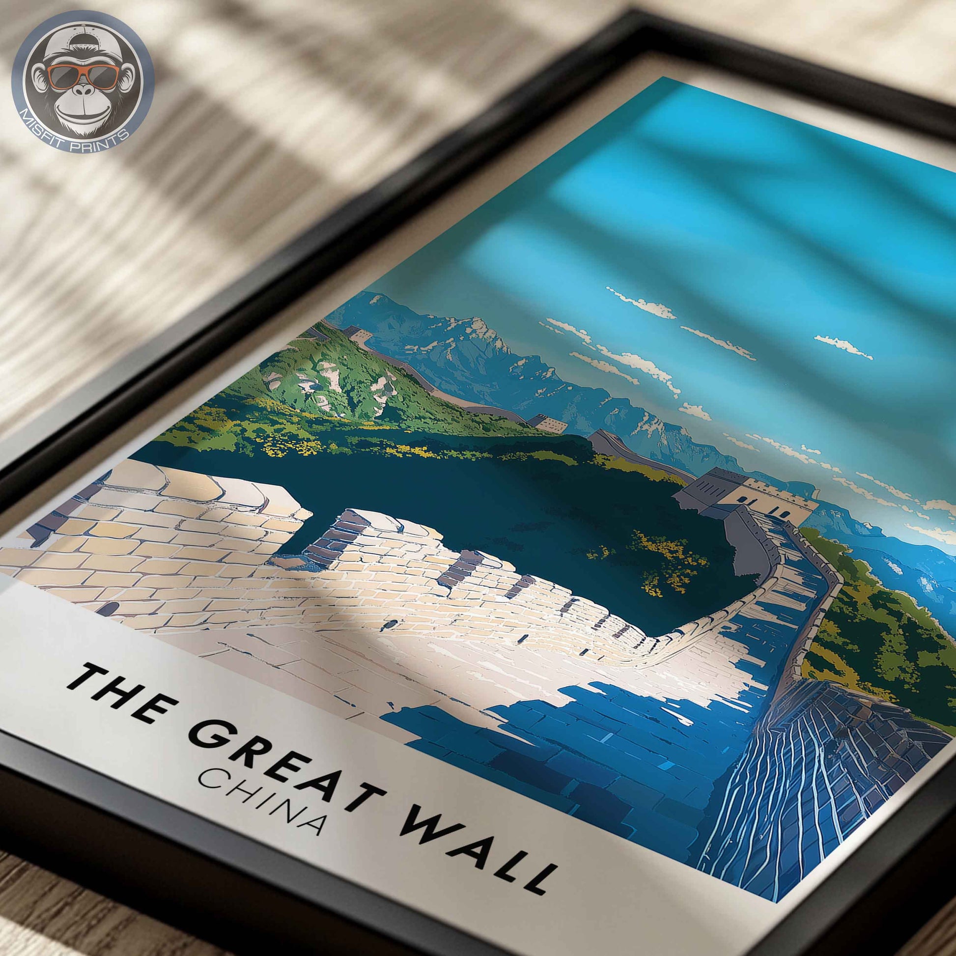 The Great Wall Poster – China Travel Wall Art, Historic Landmark Print, Mountain Landscape Decor